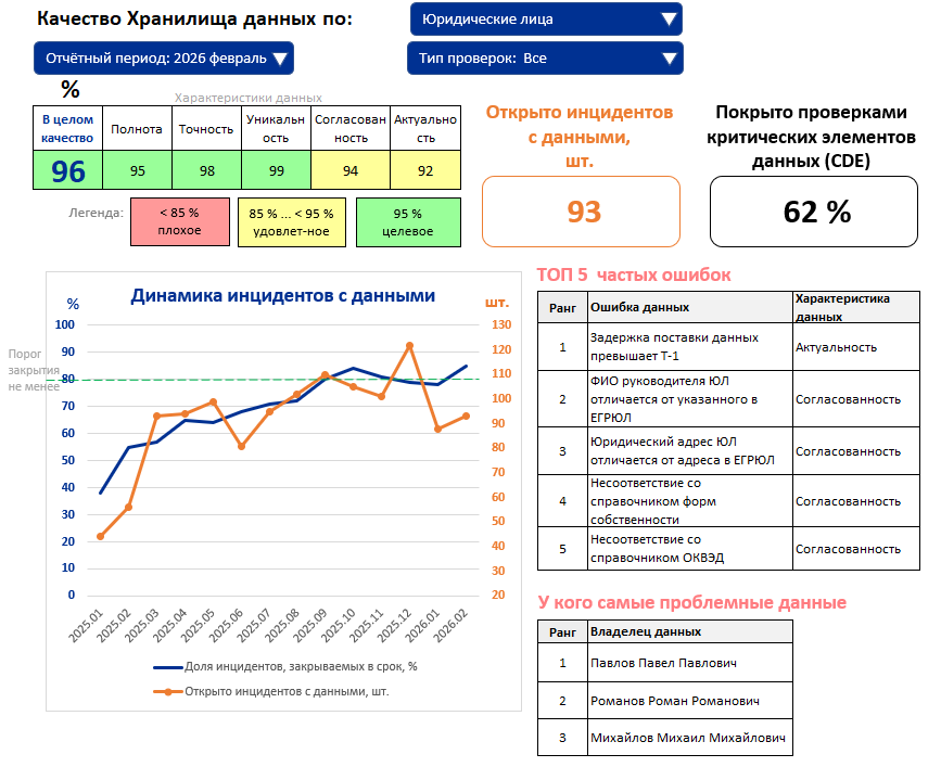 • Служба по решению инцидентов по качеству данных