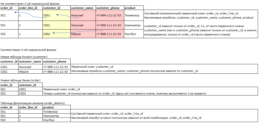Все неключевые атрибуты (столбцы, которые не входят в первичный ключ) должны полностью зависеть от всего первичного ключа.