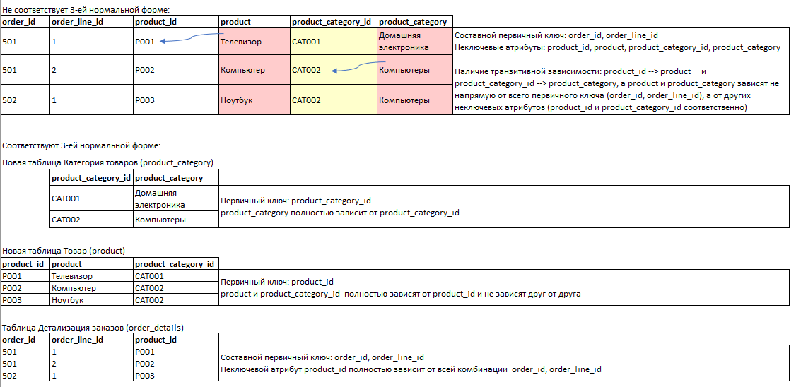 3NF означает, что таблица соответствует условиям 2NF, и дополнительно к этому ни один неключевой атрибут не должен зависеть от другого неключевого атрибута, т. е. нет никаких транзитивных зависимостей. Обычно на практике для таблиц достаточно соответствия 3-ей нормальной форме, поскольку значительно уменьшается избыточность данных и предотвращаются аномалии.